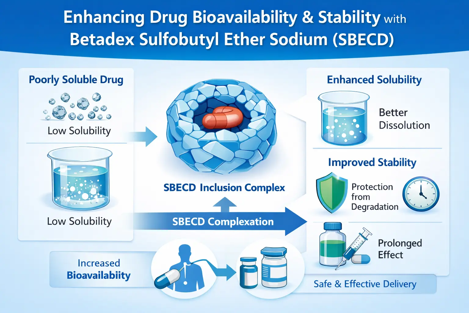 বিটাডেক্স সালফোবুটিল ইথার সোডিয়াম ফার্মাসিউটিক্যাল এক্সিপিয়েন্টের বিজ্ঞানে একটি বড় পদক্ষেপ। এটি ওষুধের যৌগগুলি তৈরি করা সম্ভব করে যা আগে তৈরি করা কঠিন ছিল। কারণ এটি একই সময়ে স্থিতিশীলতা এবং জৈব উপলভ্যতা উন্নত করতে পারে, এটি বর্তমান ফার্মাসিউটিক্যাল উন্নয়নের জন্য অপরিহার্য। SBECD এর আণবিক এনক্যাপসুলেশন বৈশিষ্ট্যগুলি এটিকে কাজ করে। তারা এমন ওষুধ তৈরি করে যা খুব সহজে সহজে দ্রবীভূত হয় না। যেহেতু ওষুধ কোম্পানিগুলি আরও জটিল থেরাপিউটিক যৌগগুলি তৈরি করতে থাকে, তাই SBECD তাদের গবেষণা এবং লঞ্চের সময় ভালভাবে কাজ করে এমন পণ্যগুলি তৈরি করতে তাদের প্রয়োজনীয় ফর্মুলেশন স্বাধীনতা দেয়৷